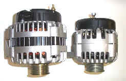The difference betweeen upgrading an alternator to high output - like a 220 amp stator versus using two alternators is the output at low rpm and load on the alternator. An alternator under load gets hot, as does the voltage regulator. An internally regulated GM alternator with a 220 amp stator has a greater chance of blowing the voltage regulator and the rectifier - or at least one or two diodes in the rectifier - which is just as bad, - than using two even stock alternators. Diodes fail under heavy constant load - for example if an alternator is used for welding above 15 volts the diodes will fail unless they are non-avalanche style and high amp like 75 or 80 amp - which multiplied by three is a 240 amp pass capabilitiy. When a diode fails you will not get full output available from the alterntor and you may heard it emit a high pitched squeal, though it will still put out voltage and amperage, though at idle you may only get 13 to 13.5 volts max.