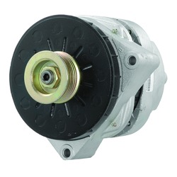 This is a remanufactured GM type 12 and 4 o'clock stye AD244 style DR44 high amp alternator now with 12 diodes and high amp stator and rotor - and it requires an EXTERNAL REGULATOR - not included. It can put out up to 450 amps continuous and puts out 110 amps at idle (650 rpm). GM never made such a thing - but Penntex industries did for the PX-1000 and 2000 series regulators for heavy duty Truck and Ambulance service. Theirs had 35 amp diodes and was rated for 200 amps - this unit has 75 amp diodes ALL inside the case so it fits as a stock unit does